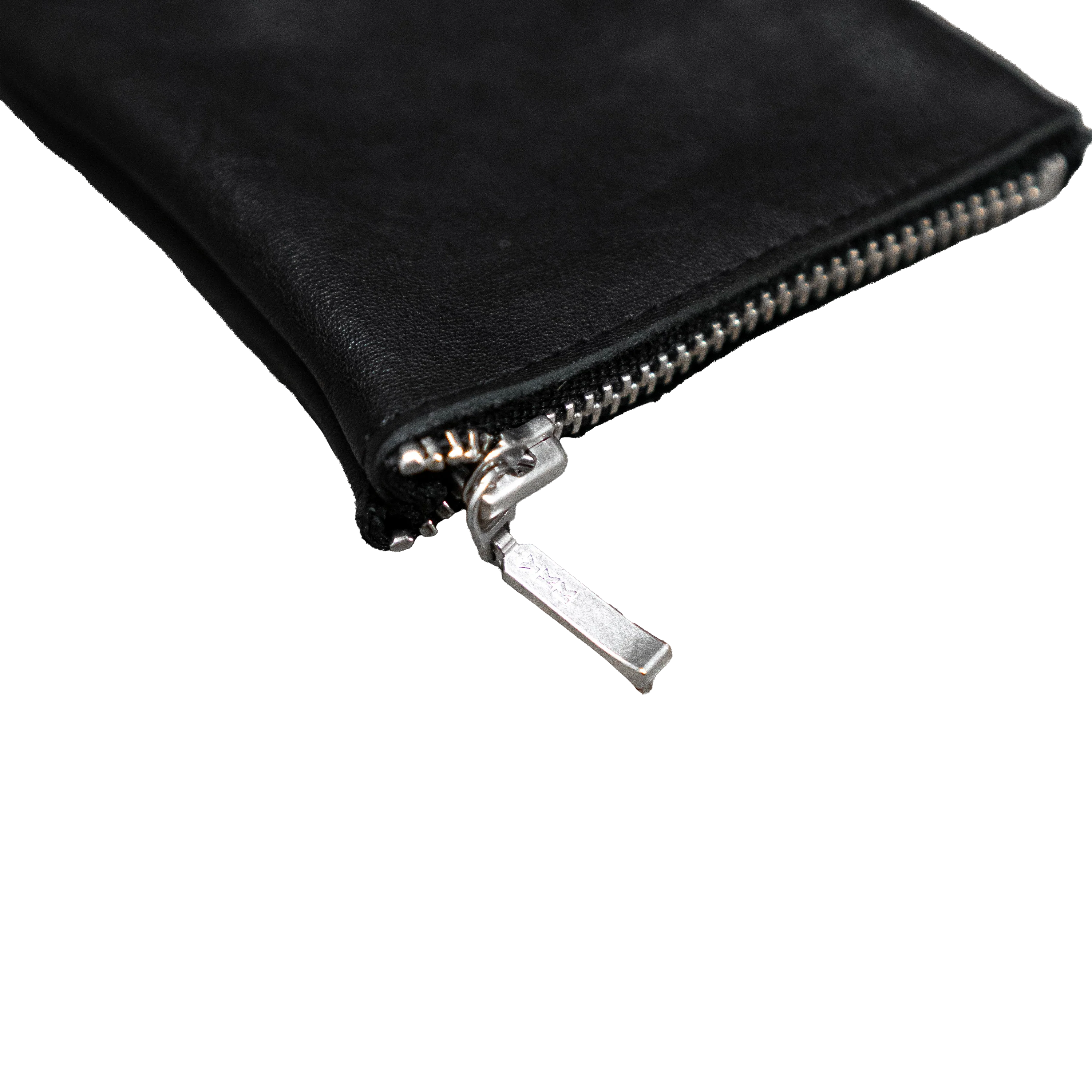 A leather pouch we include with most jewelry orders. This is version 3. 100% cow leather with a debossed ANGELtype logo and silvertone YKK zipper. If you want an extra one, or just the pouch on its own, you can purchase it here.
