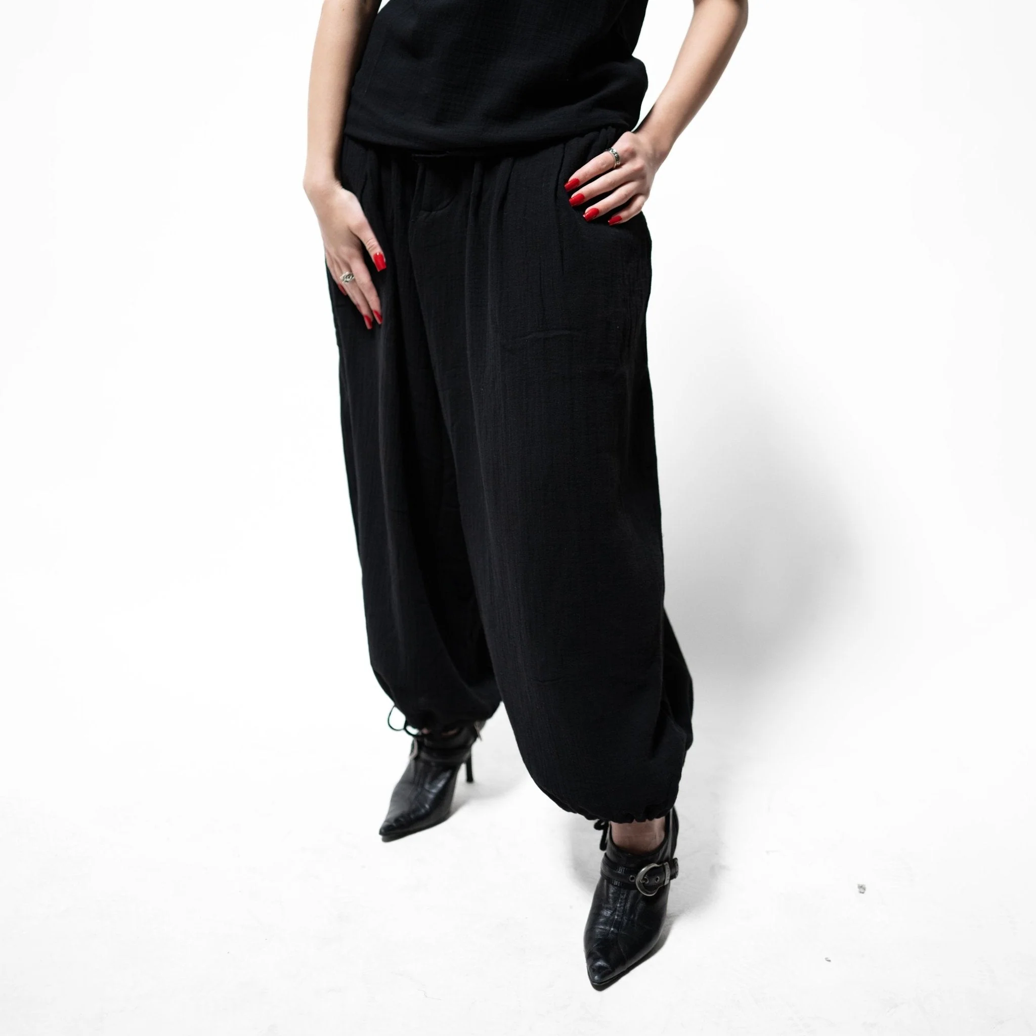 ✦ Features: Muslin fabric, two side seam pockets, one back pocket, no belt loops, drawstring waist and leg openings