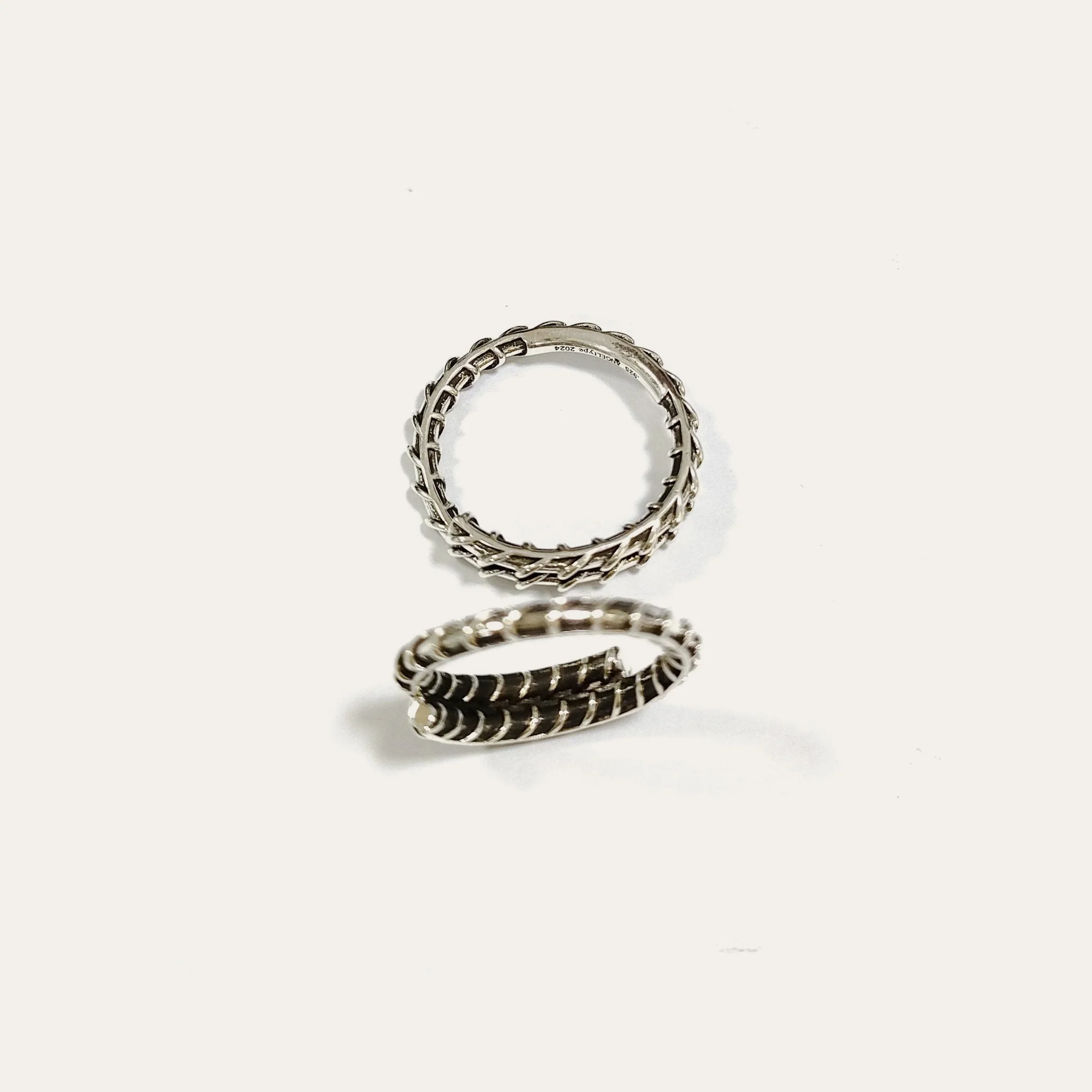 Inspired by the reinforcing bar used in construction. My grandfather was a contractor and I remember seeing a lot of rebar growing up. I wanted to reformat that material into something wearable. .925 sterling silver, oxidized and polished finish.